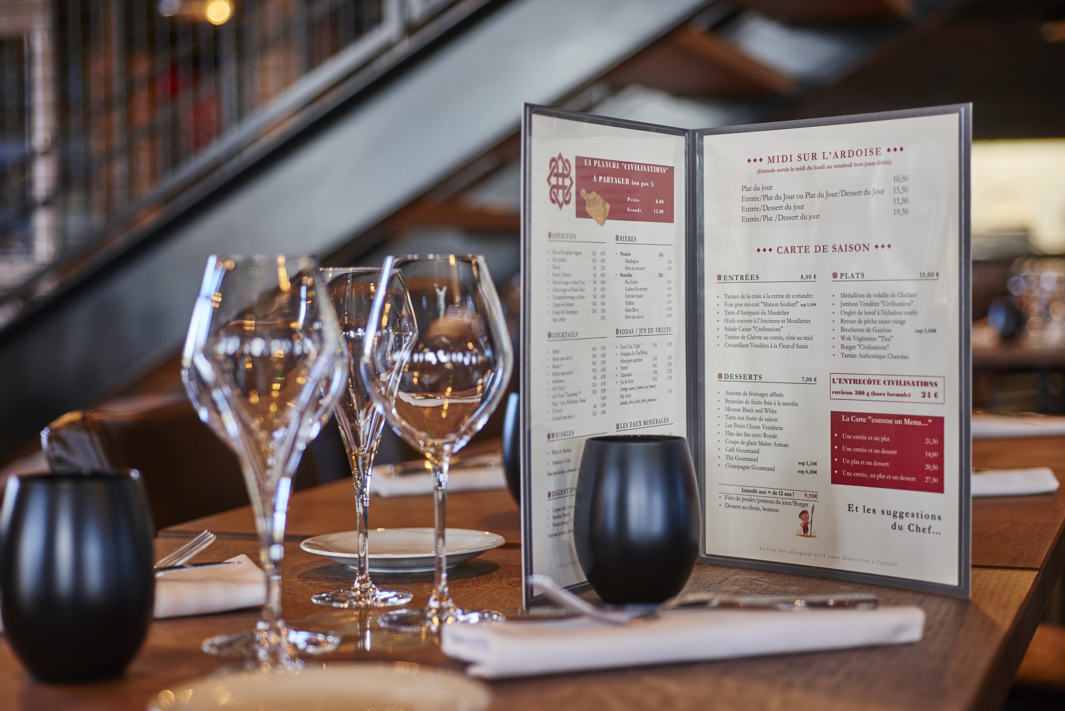 Le restaurant Civilisations vous ouvre les portes de sa salle principale. En famille, entre amis, en duo ou pour un déjeuner d’affaires, profitez d’une ambiance tamisée dans un espace organisé pour préserver votre tranquillité et vous régaler en dégustant des plats traditionnels bistronomiques.